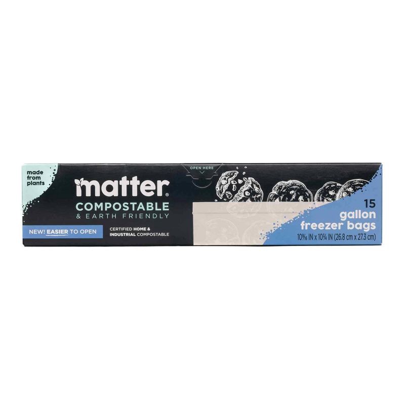 - Matter brand Gallon Freezer Storage Bags are home and commercially compostable (Facilities may not exist in your area)