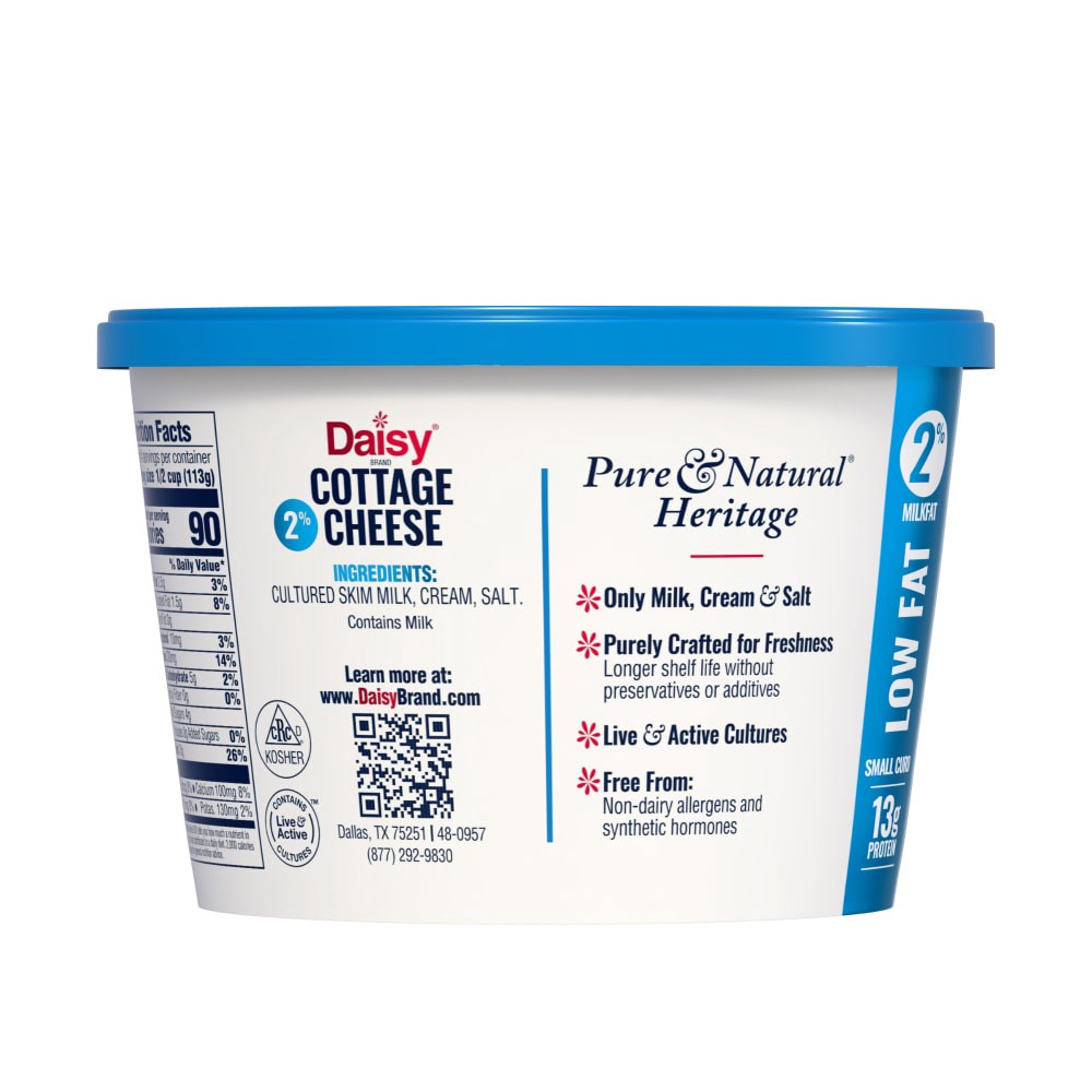 Discover why Daisy is America’s #1 cottage cheese. Protein packed and specially made with only 3 ingredients, and live and active cultures, to deliver that fresh and creamy taste in every bite. There'…