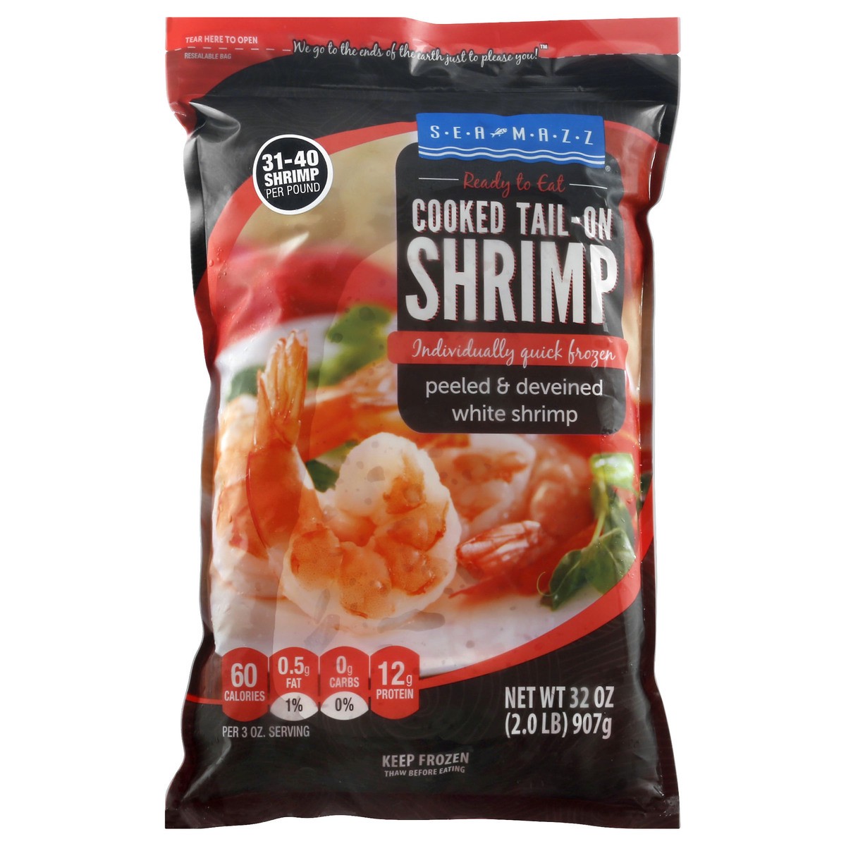 Peeled & deveined white shrimp. Per 3 oz Serving: 60 calories; 0.5 g fat (1%); 0 g carbs (0%); 12 g protein. We go to the ends of the earth just to please you! 31-40 shrimp per pound. Ready to eat. In…