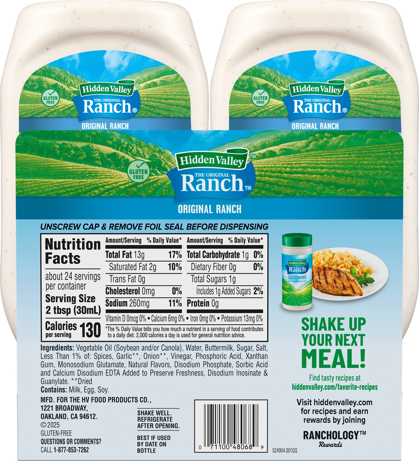 Hidden Valley Original Ranch Condiment and Dressing, 24 Fluid Ounces Each, Pack of 2