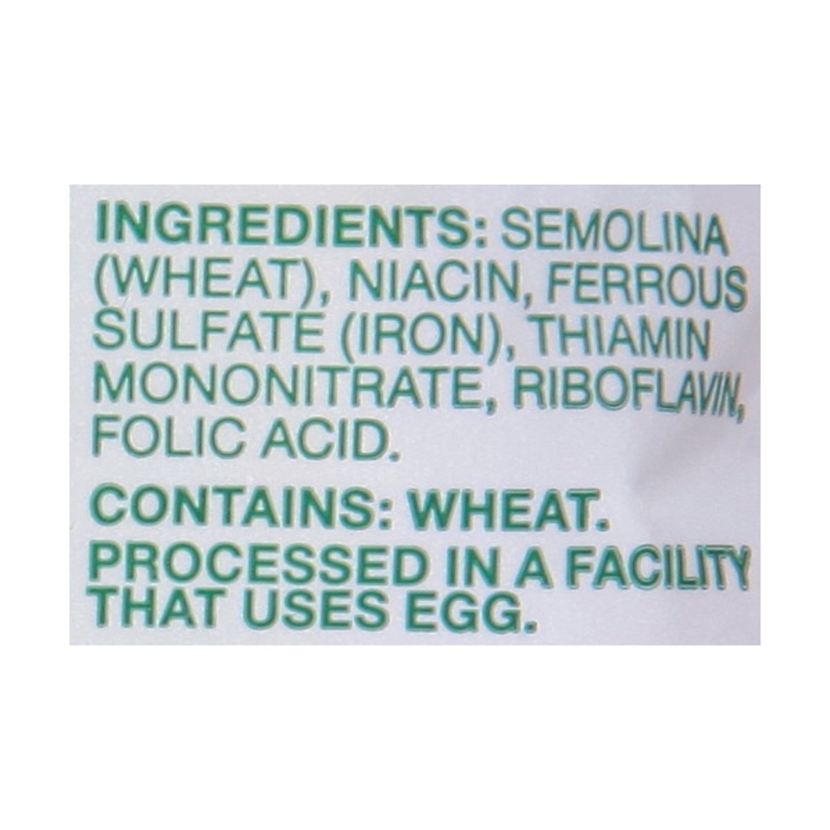 Semolina (Wheat), Niacin, Ferrous Sulfate (Iron), Thiamin Mononitrate, Riboflavin, Folic Acid.