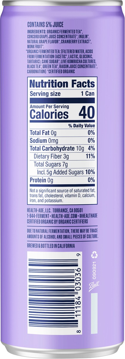 Organic Fermented Tea (Organic Fermented Tea: [Filtered Water, Acids from Fermentation (Acetic (Certified Organic), Lactic, Gluconic, Tartaric), Cane Sugar (Certified Organic), Live Kombucha Cultures,…