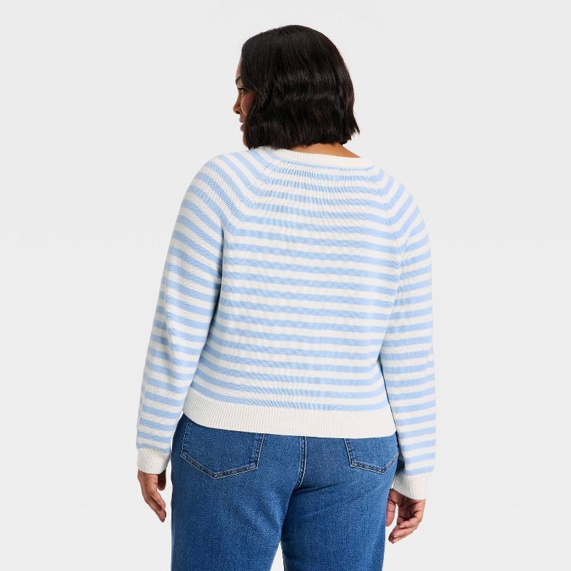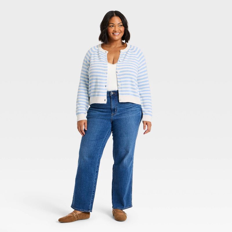 Women's Crewneck Cotton Cardigan - Universal Thread™ Blue Striped XXL