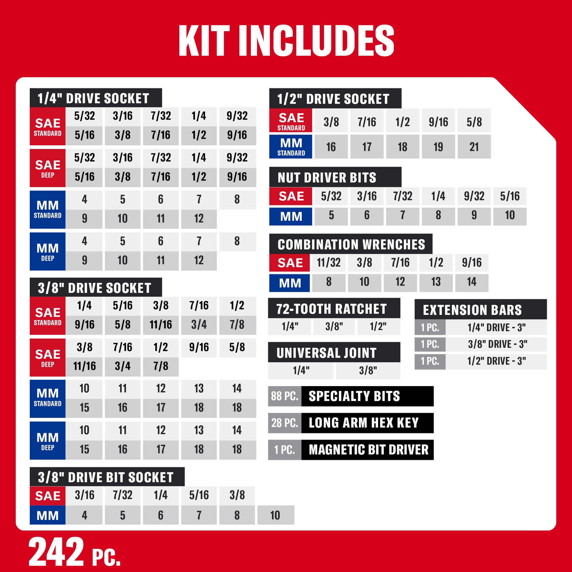 CRAFTSMAN VERSASTACK 242 -Piece Metric and standard (SAE) Mechanics Tool Set with Hard Case