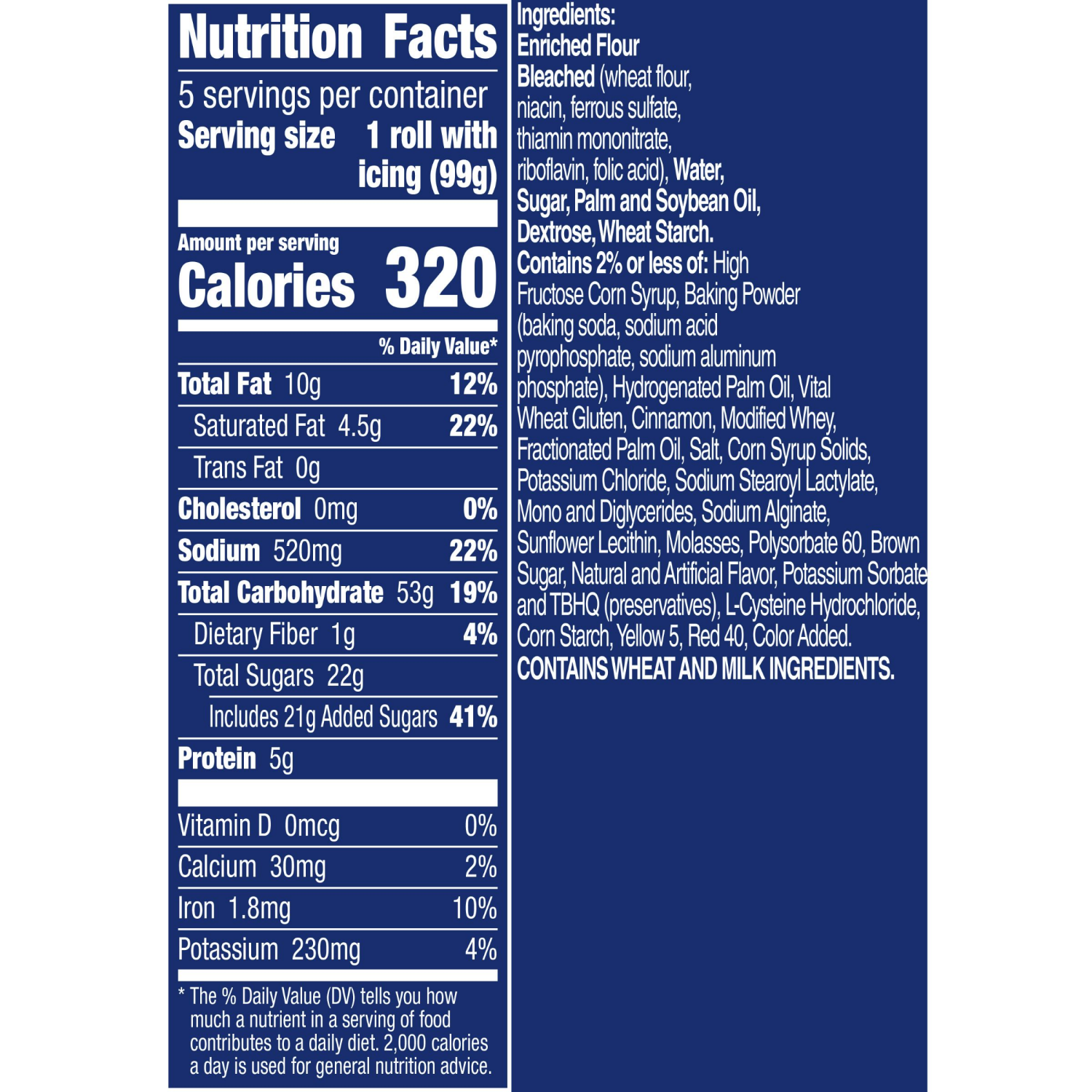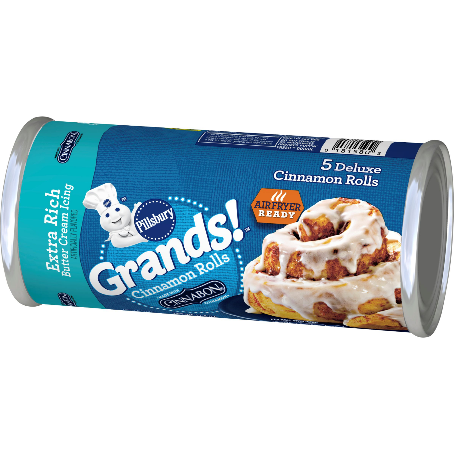 Pillsbury Grands! Big Cinnamon Rolls. Cinnabon. 5 Deluxe cinnamon rolls. Now more icing! Extra rich butter cream icing. Artificial flavors. Per roll with icing: 300 Calories. 3g Sat fat, 16% DV. 520mg…