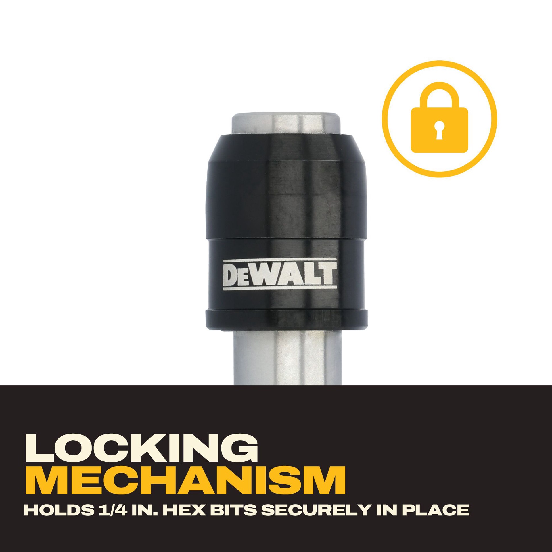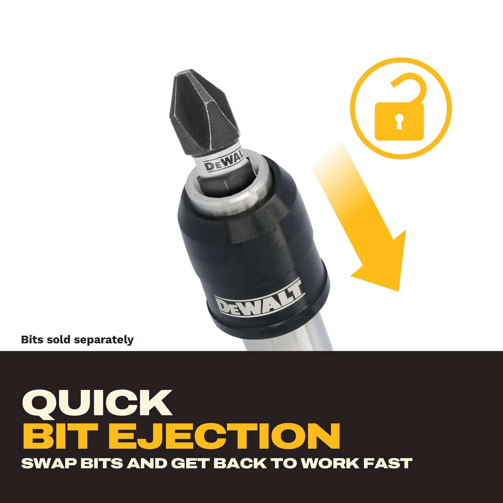 Locking Mechanism - Holds 1/4-in hex bits securely in place. Quick Bit Ejection - Swap bits and get back to work fast. Easy Identification - Color-coded bands. Convenient Storage - Includes a DEWALT c…