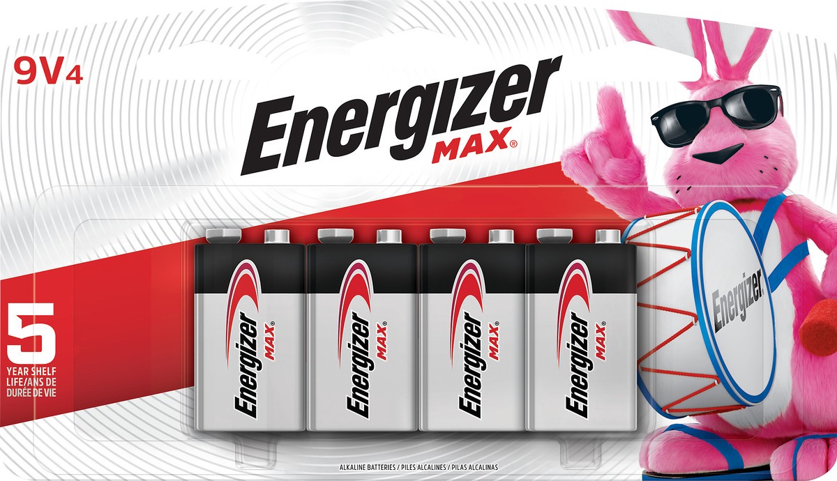 - 4 pack of Energizer MAX 9V Alkaline Batteries