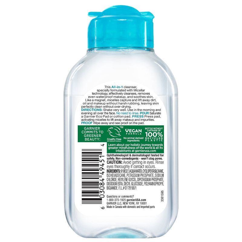 Unscented Garnier Skin Active Micellar Cleansing Water - For Waterproof Makeup - 3.4 fl oz: Paraben-Free, Silicone-Free, Vegan