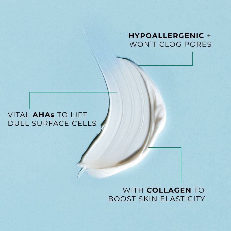- SMOOTHING INGREDIENTS FOR RADIANT SKIN – This daily face moisturizer is formulated with AHAs to remove dull surface cells, collagen to support firmness, and vitamin E to hydrate and nourish skin