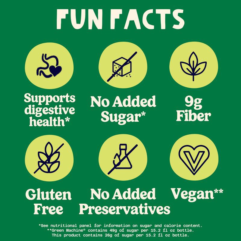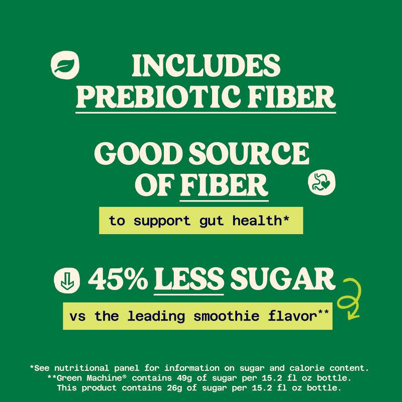 - This fruit smoothie contains 45% less sugar vs the leading smoothie flavor**** (****Green Machine contains 49g of sugar per 15.2 fl oz bottle, this product contains 26g of sugar per 15.2 fl oz bottle.)