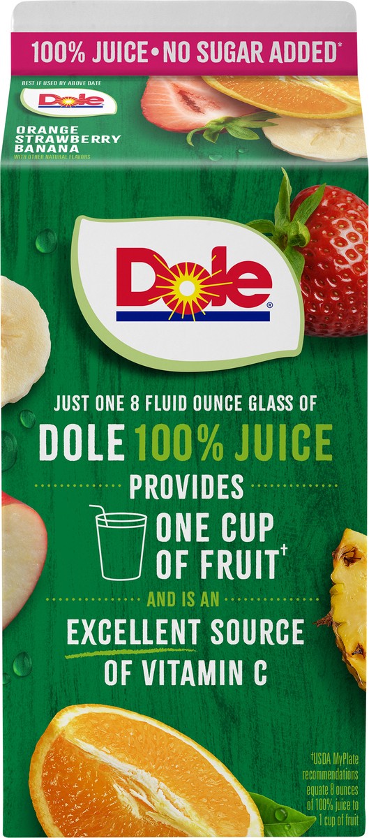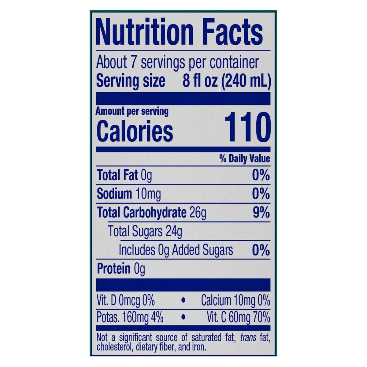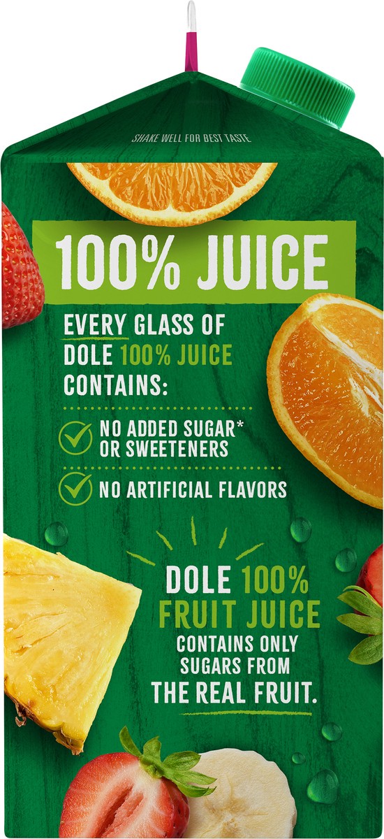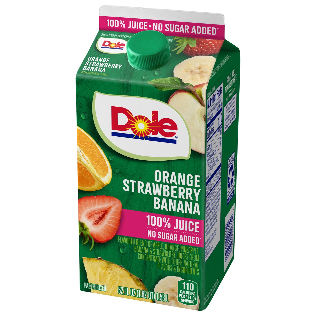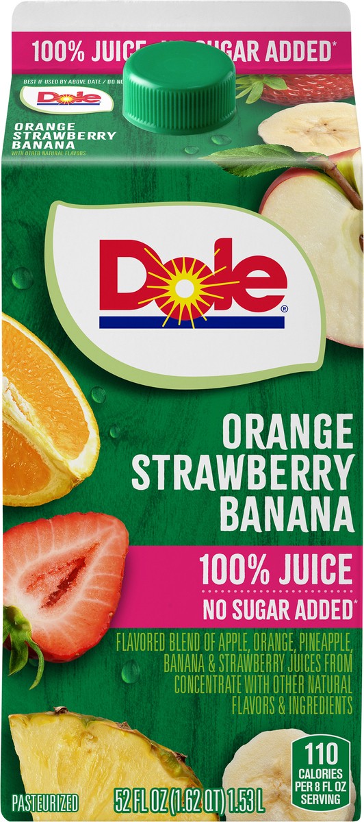 Flavored blend of apple, orange, pineapple, banana&strawberry juices from concentrate with other natural flavors & ingredients. With other natural flavors. 110 calories per 8 fl oz serving. No sugar a…
