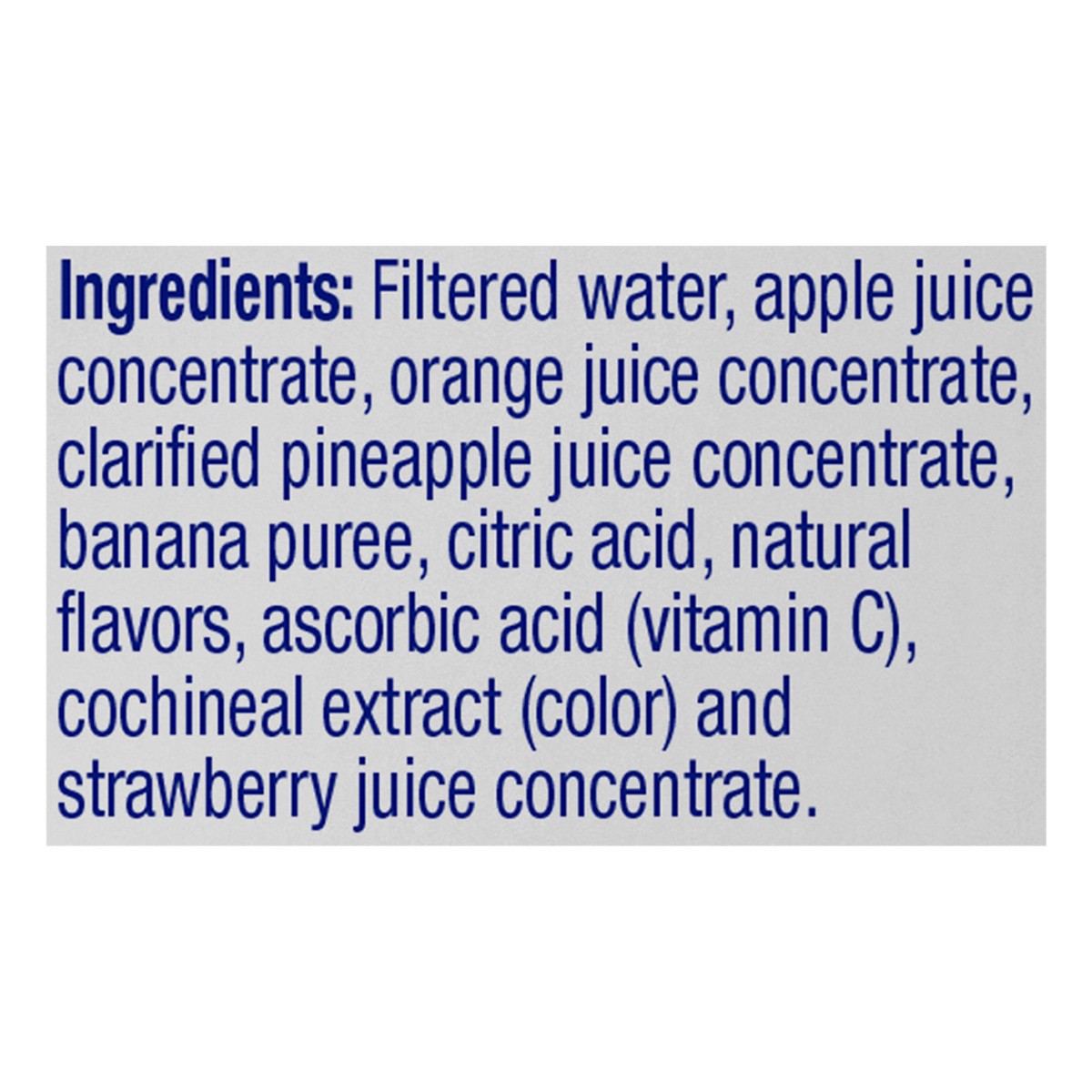 Filtered Water, Apple Juice Concentrate, Orange Juice Concentrate, Clarified Pineapple Juice Concentrate, Banana Puree, Citric Acid, Natural Flavors, Ascorbic Acid (Vitamin C), Cochineal Extract (Colo…