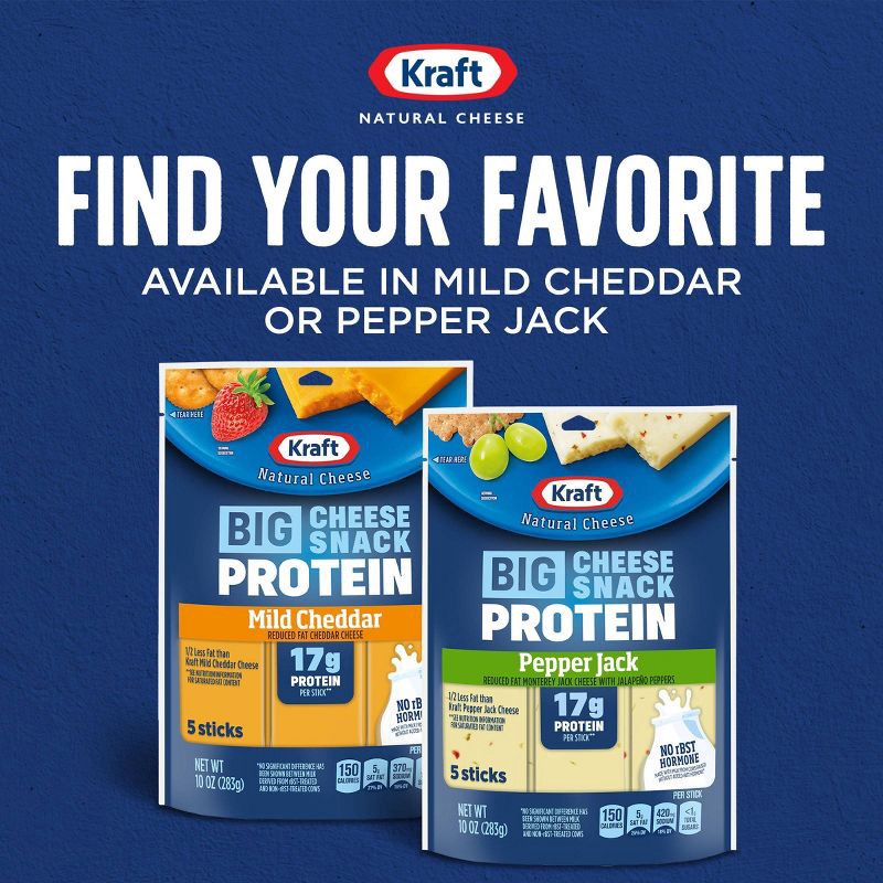 - Kraft Reduced Fat Pepper Jack Protein Big Stick 10 oz Bag (contains 5 Cheese BIG Sticks)