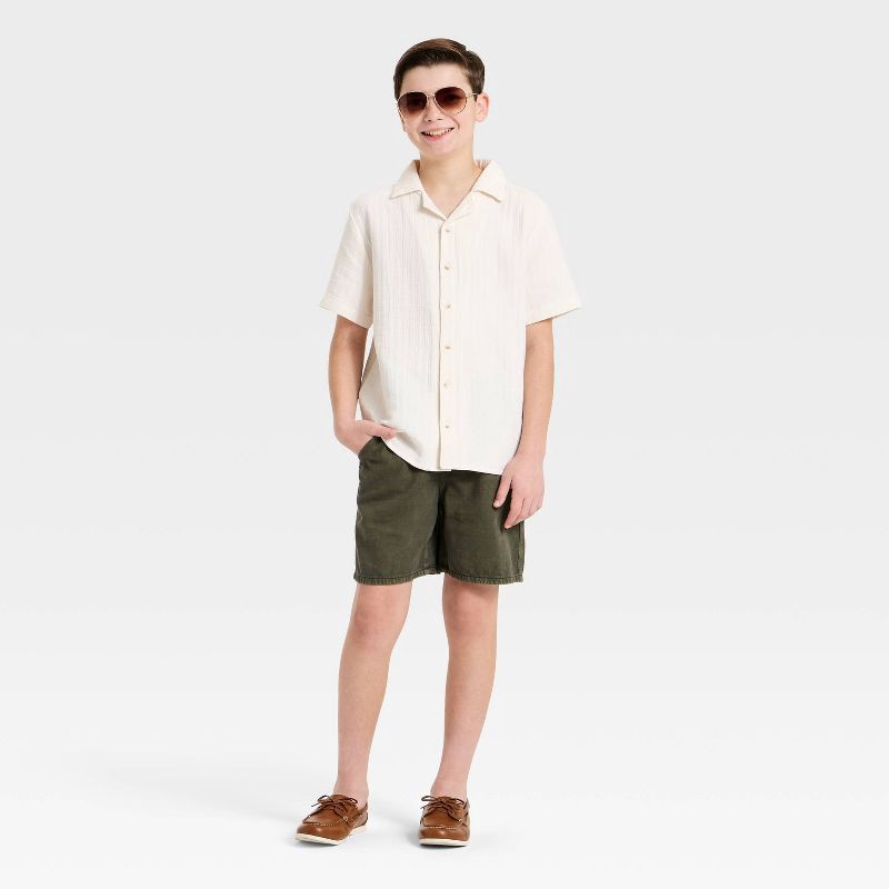 Boys' Short Sleeve Woven Button-Up Shirt - art class™ Cream M