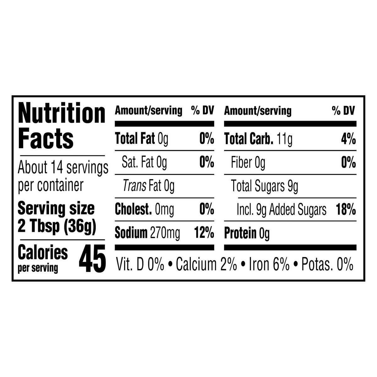 High Fructose Corn Syrup, Vinegar, Water, Tomato Puree (Water, Tomato Paste), Molasses, Modified Food Starch, Contains Less than 2% of Salt, Natural Hickory Smoke Flavor, Mustard Flour, Dried Onion, S…
