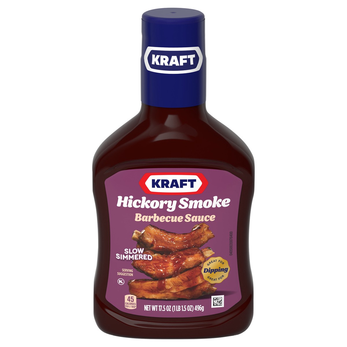 Kraft Hickory Smoke Slow-Simmered Barbecue Sauce and Dip adds bold, smoky barbecue flavor to almost anything. Bursting with molasses, vinegar, spices and smoky hickory flavor, our tangy BBQ sauce deli…