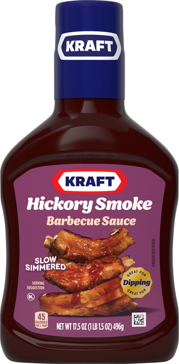 Kraft Hickory Smoke Slow-Simmered Barbecue Sauce and Dip adds bold, smoky barbecue flavor to almost anything. Bursting with molasses, vinegar, spices and smoky hickory flavor, our tangy BBQ sauce deli…