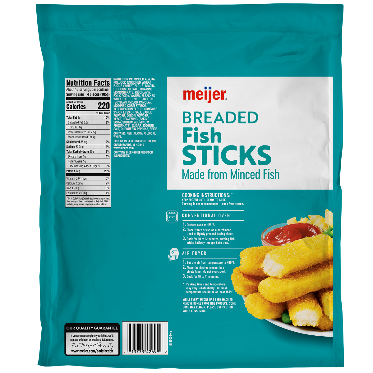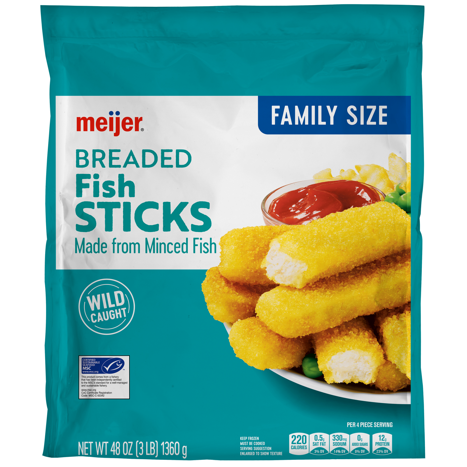 Enjoy a hearty meal with Meijer's Family Size Breaded Fish Sticks, made from minced wild-caught fish. These fish sticks offer a satisfying crunch and a delicious taste, perfect for a family dinner or …