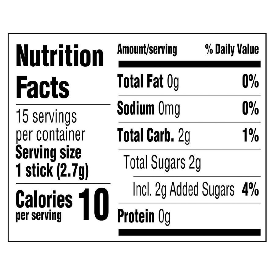 Made of: Sugar, Gum Base, Corn Syrup, Natural and Artificial Flavors; Less than 2% of: Glycerol, Soy Lecithin, Color Added, Acesulfame K, Hydroxylated Soy Lecithin, Aspartame, BHT (to Maintain Freshn…