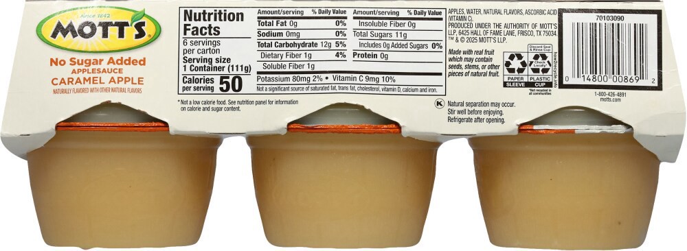 Mott's No Sugar Added Caramel Apple Applesauce, 3.9 oz cups, 6 count