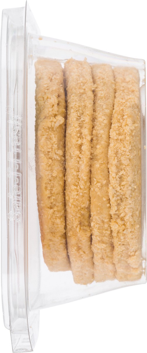 Veal, Water, Textured Soy Flour, Salt, Dehydrated Onion and Garlic Spices, Hydrolized Soy and Corn Protein (4.10%), Breading and Batter Ingredients: Bleached Wheat Flour, Water, Yellow Corn Flour, Sal…