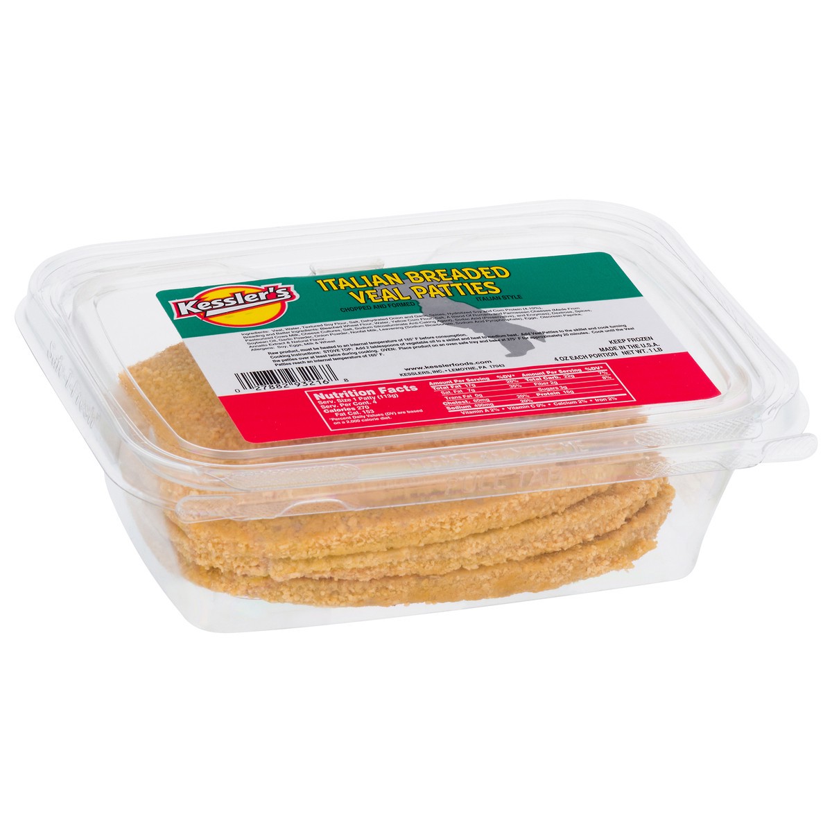 4 oz each portion. Chopped and formed Italian style. Safe-T-fresh. www.kesslerfoods.com. Made in U.S.A.