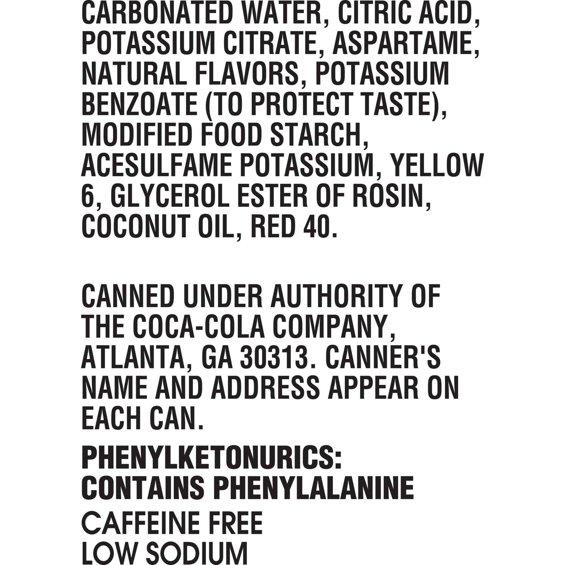 Carbonated Water, Less than 2% of: Citric Acid, Potassium Citrate, Aspartame, Natural Flavors, Modified Food Starch, Potassium Benzoate (to Protect Taste), Acesulfame Potassium, Glycerol Ester of Rosi…