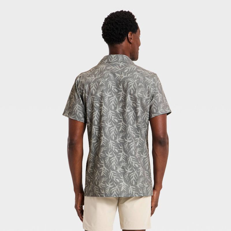 Men's Short Sleeve Button Up Camp Collar Shirt- All In Motion™ Jet Black M