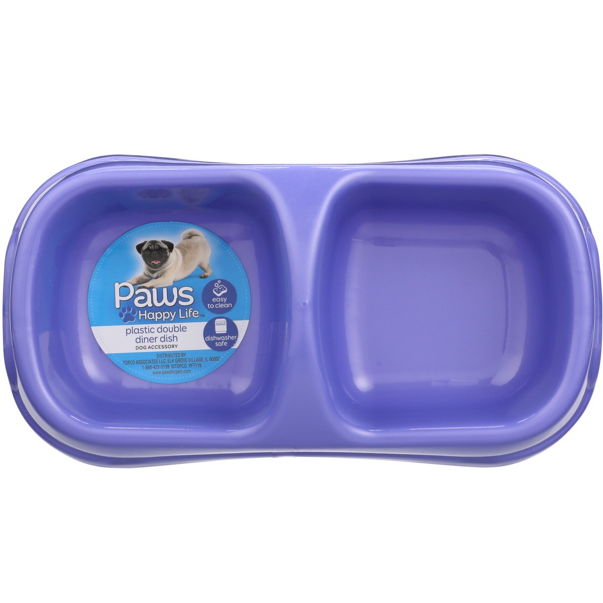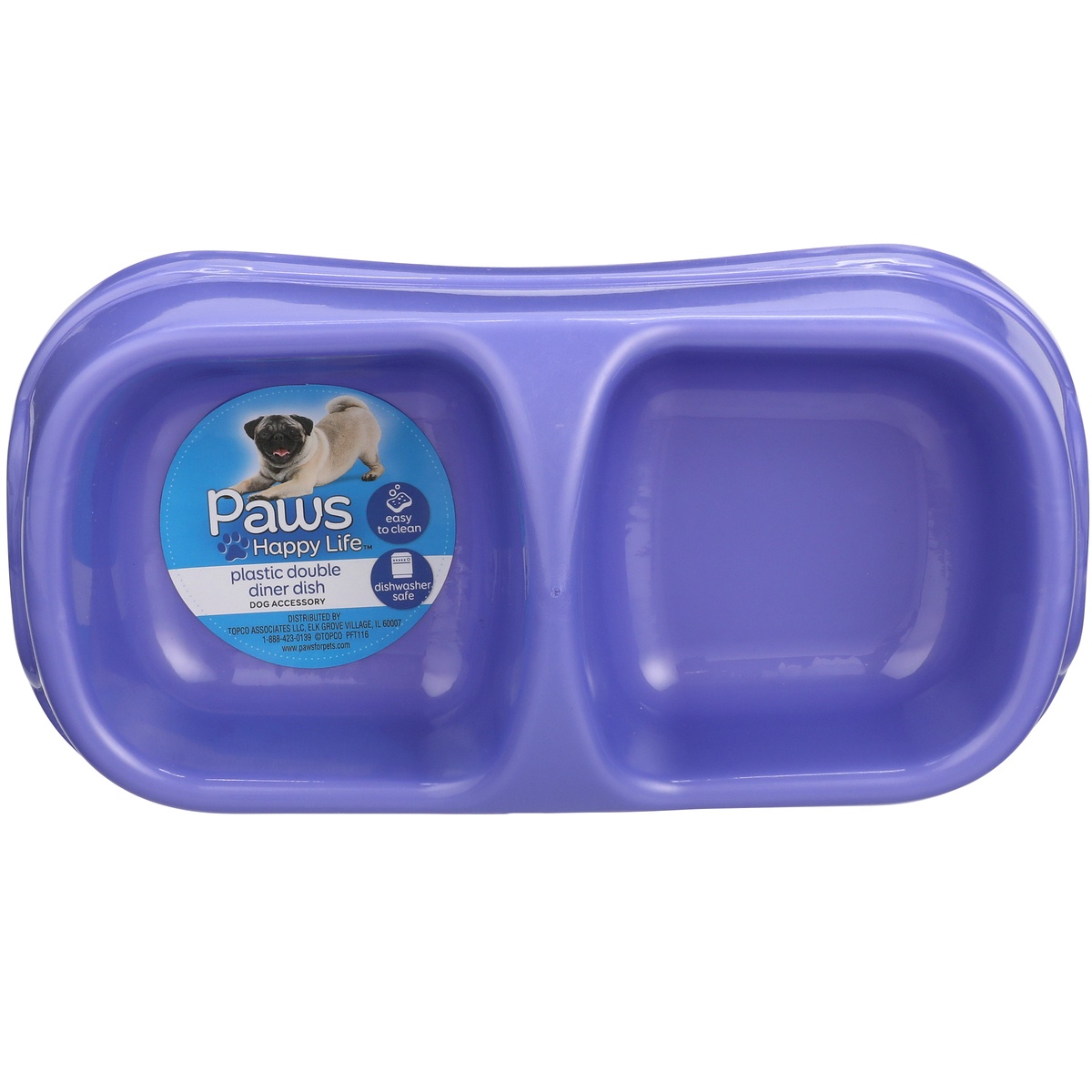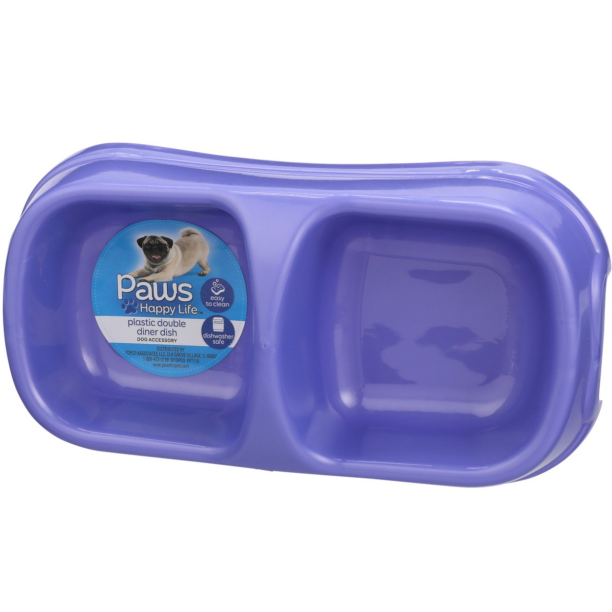 slide 1 of 11, Paws Happy Life Double Diner Plastic Dog Dish, 1 ct