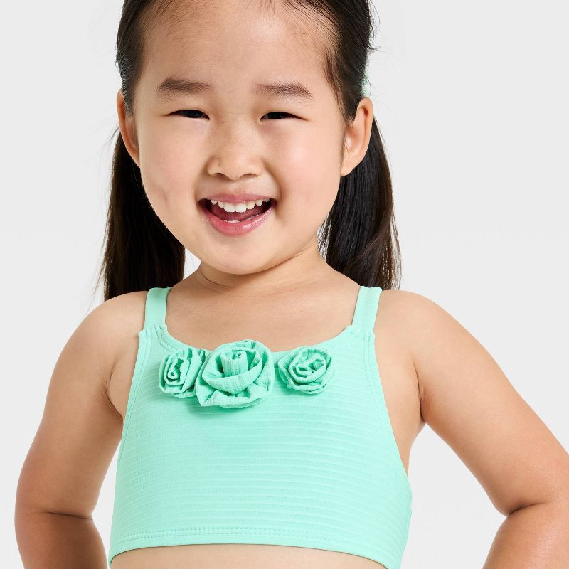 Add cute style to your little one's swim wardrobe with this Bikini Set from Cat & Jack™. This two-piece tricot swim set features a sleeveless bikini top with 3D rosette-motif front and stylish straps …