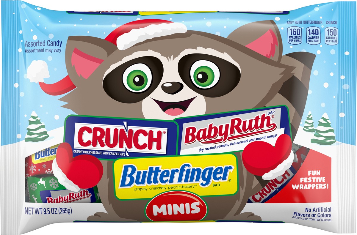 Crunch: contains: milk, soy. may contain peanut, tree nuts, wheat. baby ruth: contains: milk, peanut, soy. butterfinger: contains: milk, peanut, soy.
