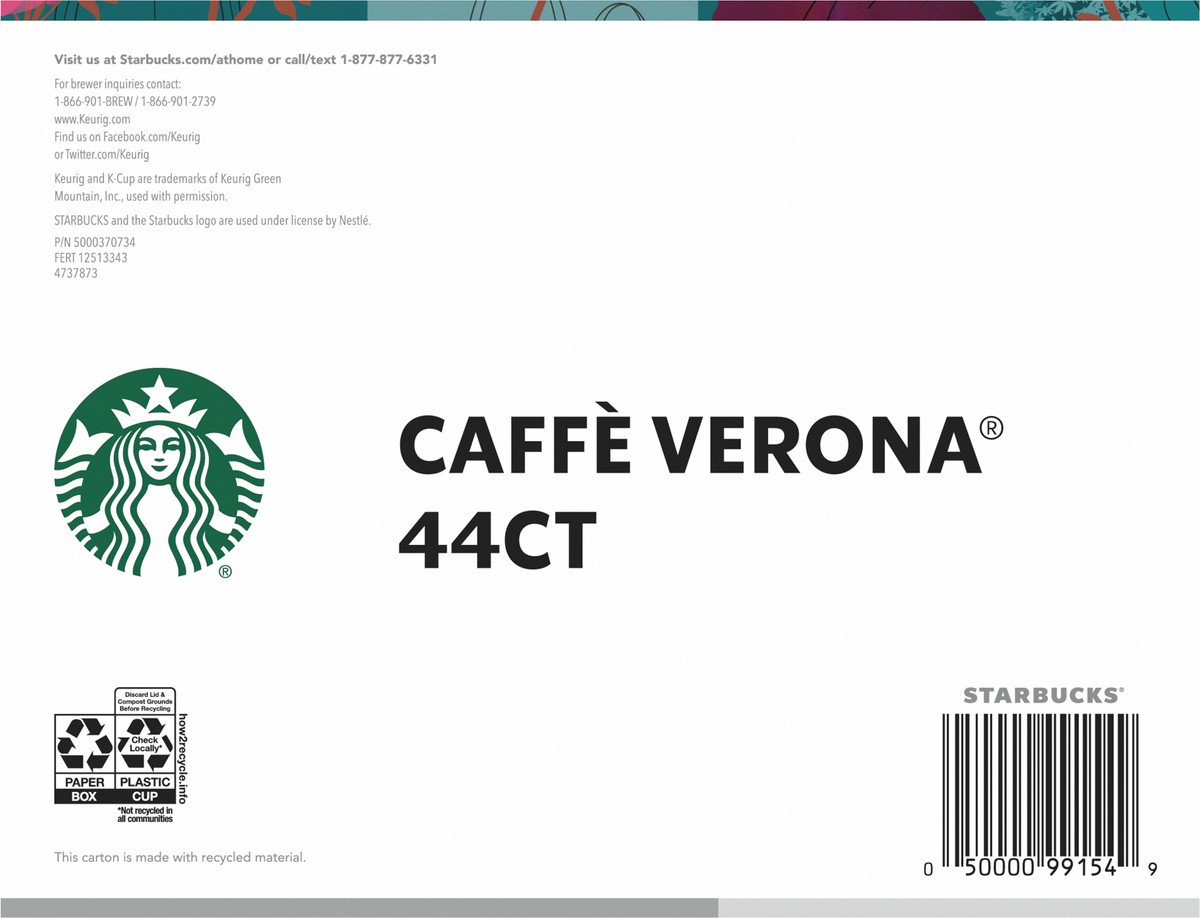 Starbucks K-Cup Coffee Pods, Dark Roast Hot or Iced Coffee, Caffè Verona, 44 Keurig Pods