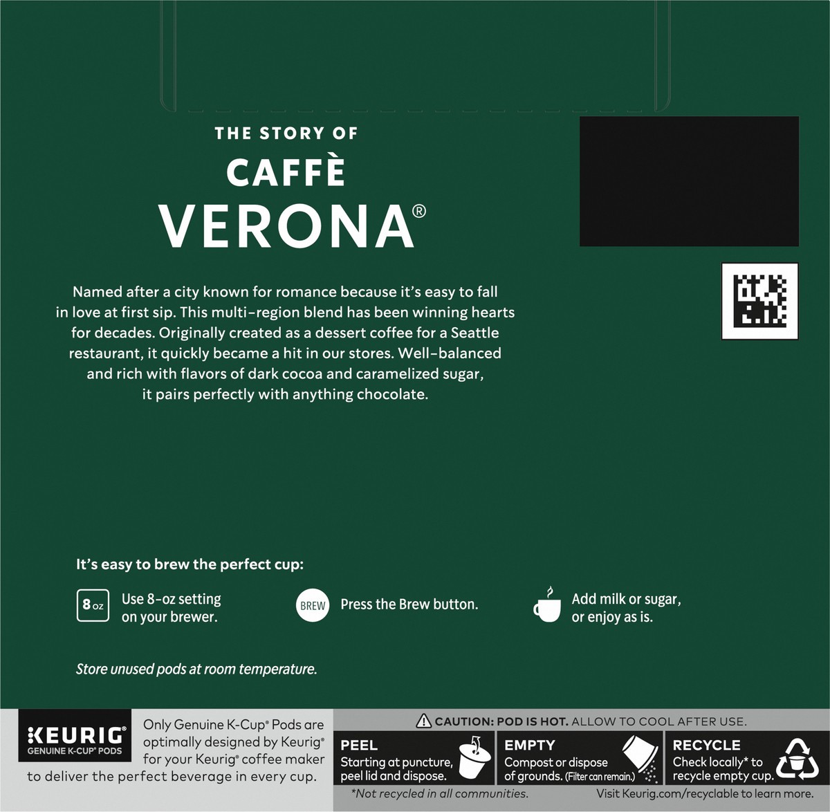 Keurig - Genuine K-Cup pods. 100% Arabica coffee. The Story of Caffe Verona: Named after a city known for romance because it's easy to fall in love at first sip. This multi-region blend has been winni…