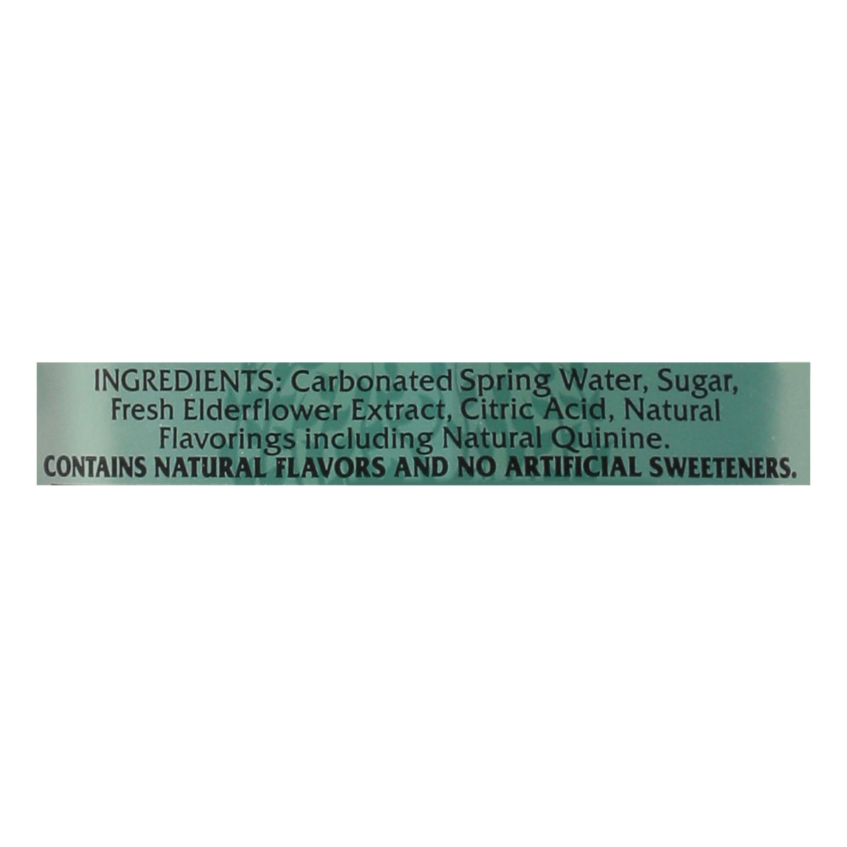 Carbonated Spring Water, Sugar, Fresh Elderflower Extract, Citric Acid, Natural Flavoring Including Natural Quinine.