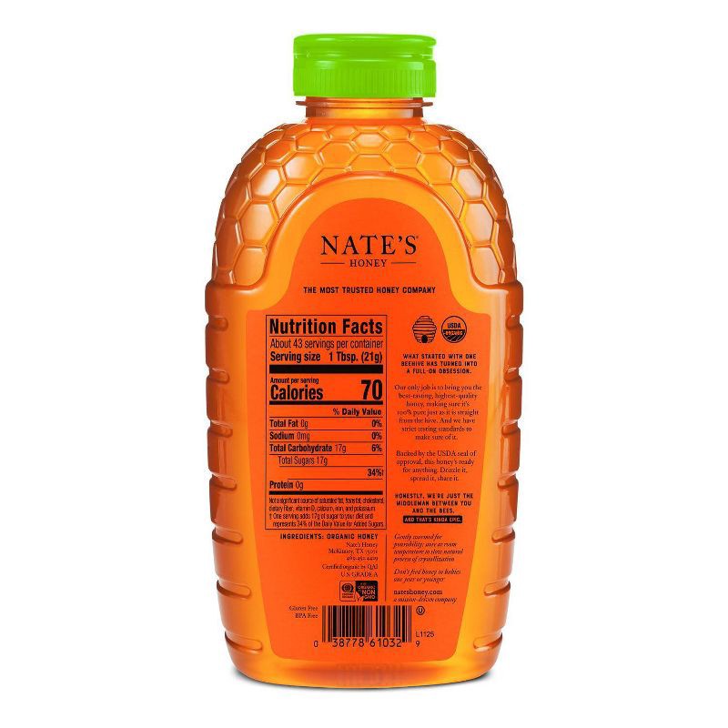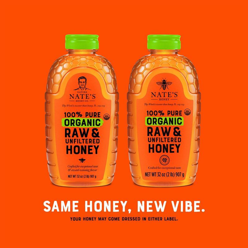 Nate's Honey 100% Pure Raw Unfiltered Organic Honey - 32oz