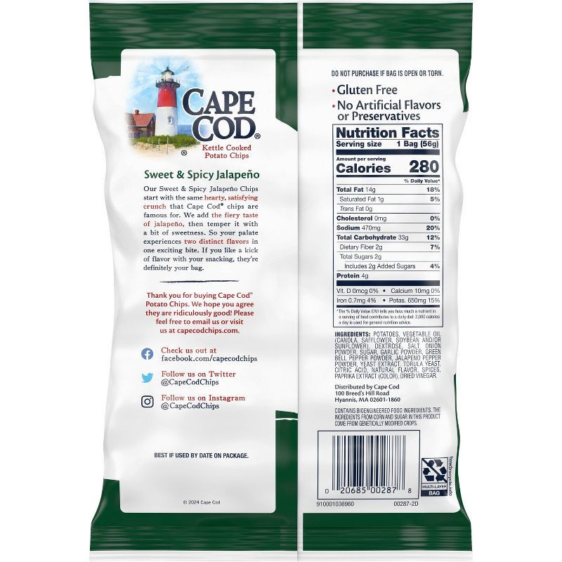 - Includes one (1) 2-ounce bag of Cape Cod Sweet & Spicy Jalapeno Potato Chips