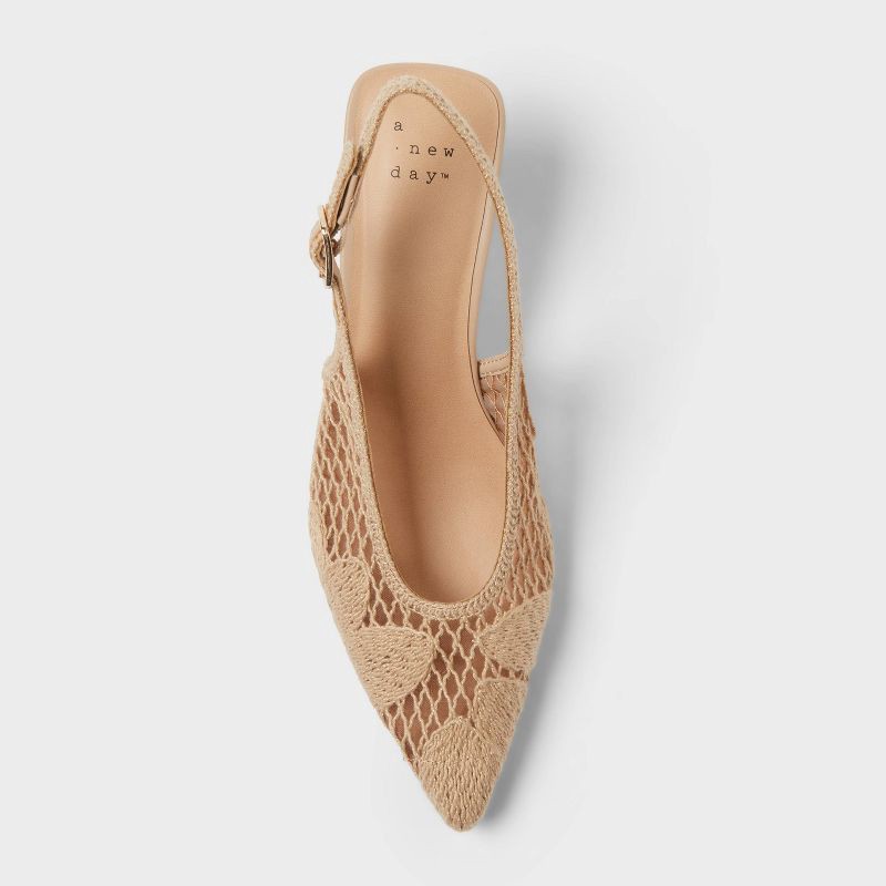 Step into effortless style with these Emmy Heels with Memory Foam Insole from A New Day™. These heels feature a mesh vamp with embroidered detailing, making them a perfect choice for dressed-up occasi…