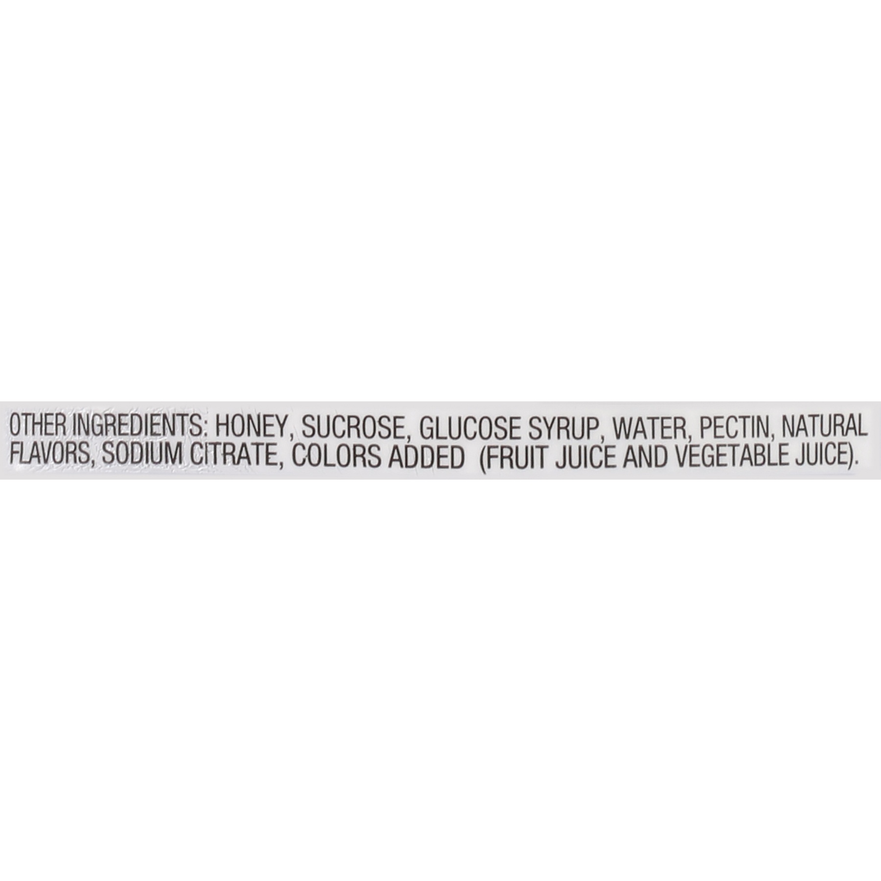 Other Ingredients: Honey, Sucrose, Glucose Syrup, Water, Pectin, Natural Flavors, Sodium Citrate, Colors Added (Fruit Juice and Vegetable Juice).