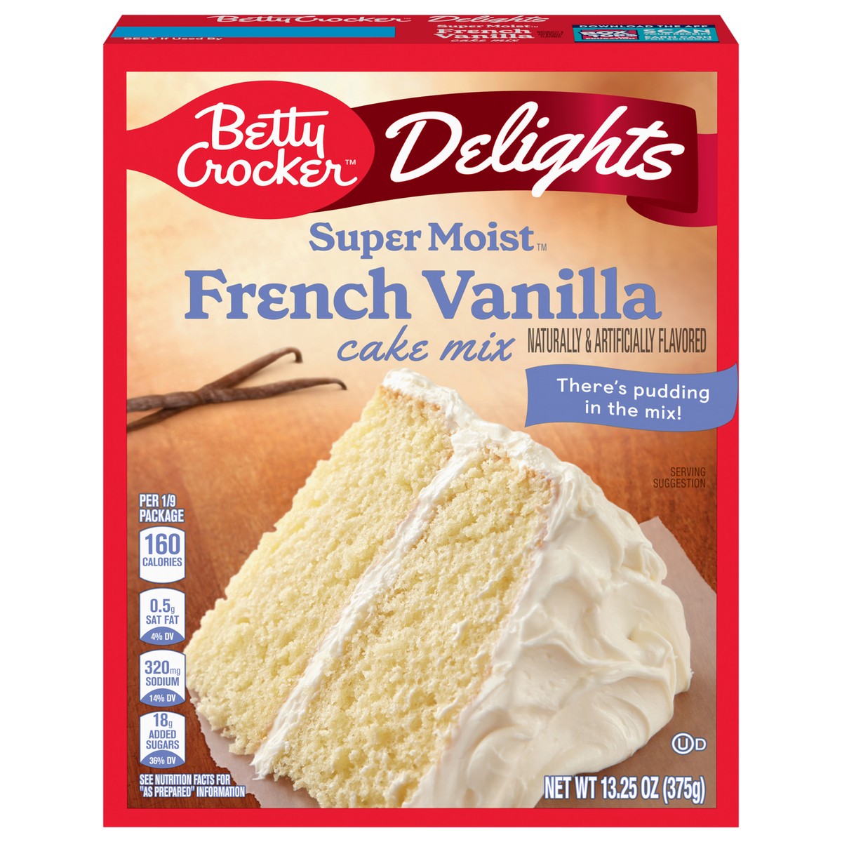 Betty Crocker Delights Super Moist French Vanilla Cake Mix, Holiday Baking, 13.25 oz