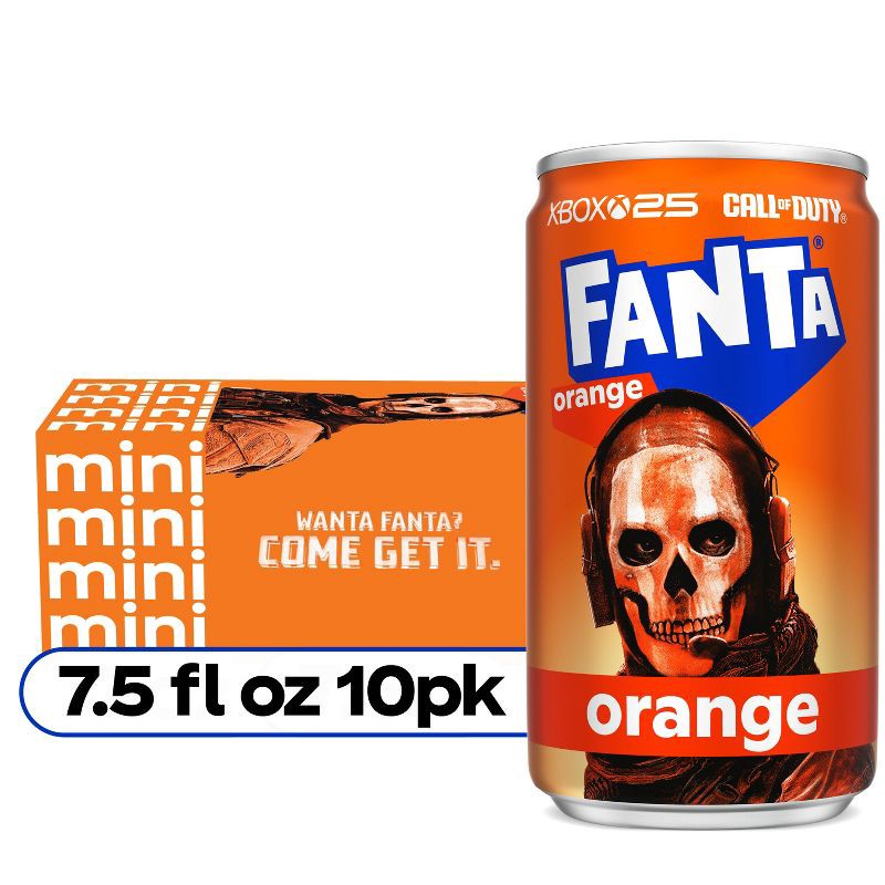 - 10 pack, 7.5 fl oz mini cans of Fanta Orange Soda soft drinks in a fridge pack for lip-smacking deliciousness in every vibrant sip