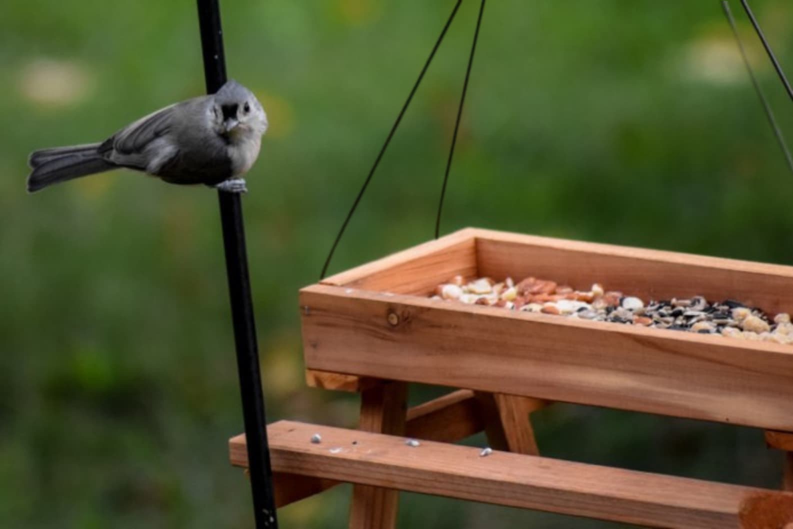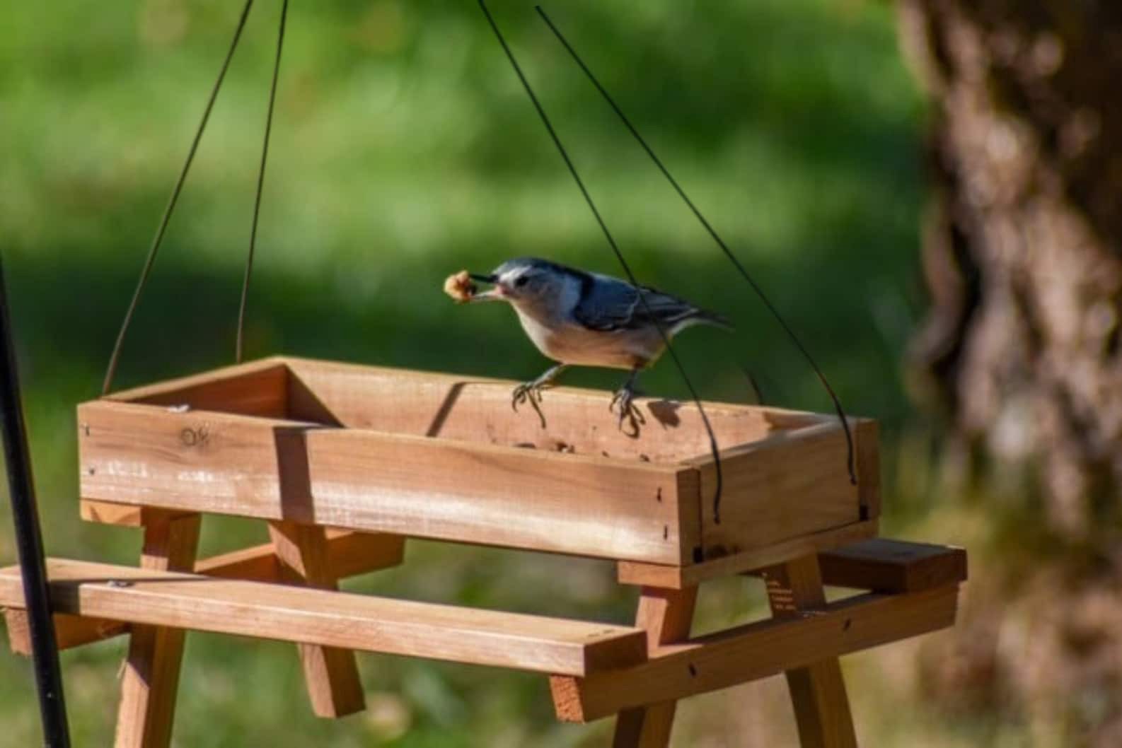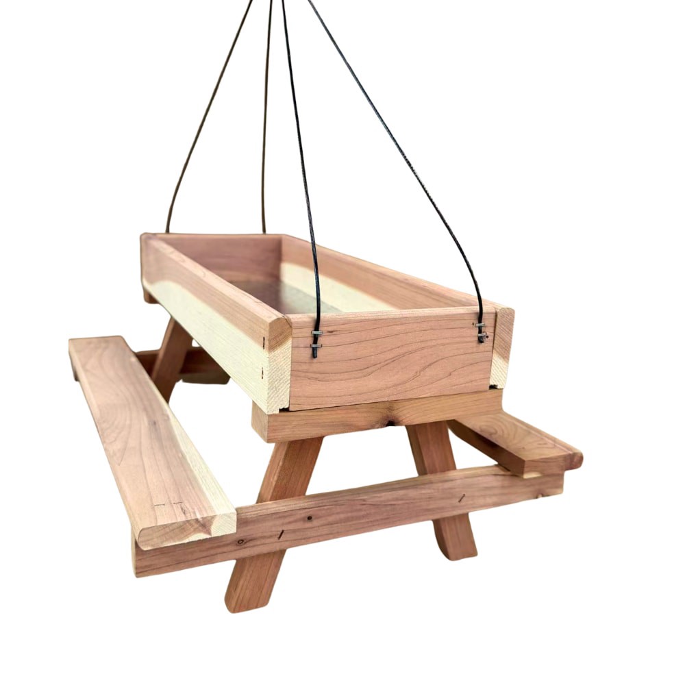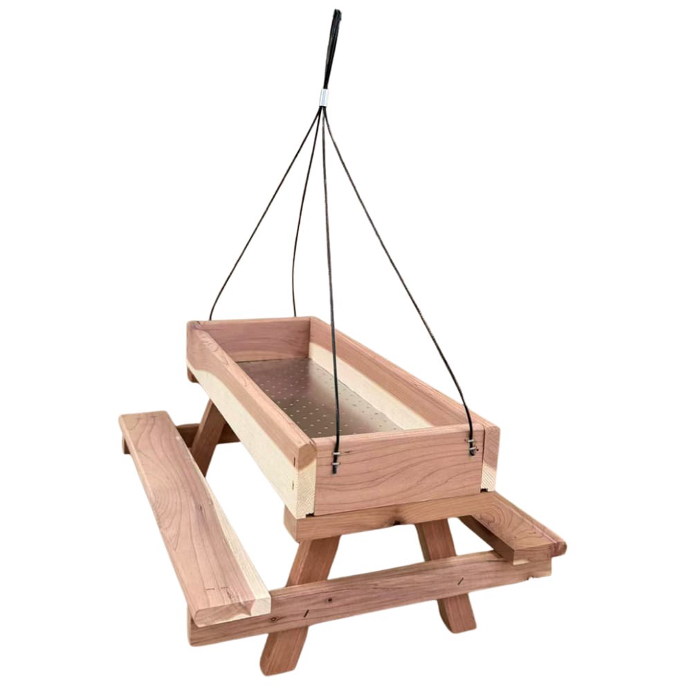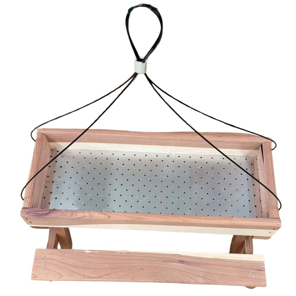 Constructed from premium Eastern Red Cedar. Cedar is naturally insect- and rot-resistant. 1-lb seed capacity. Tray-style design attracts multiple bird species. Compatible with loose seed, mealworms, s…