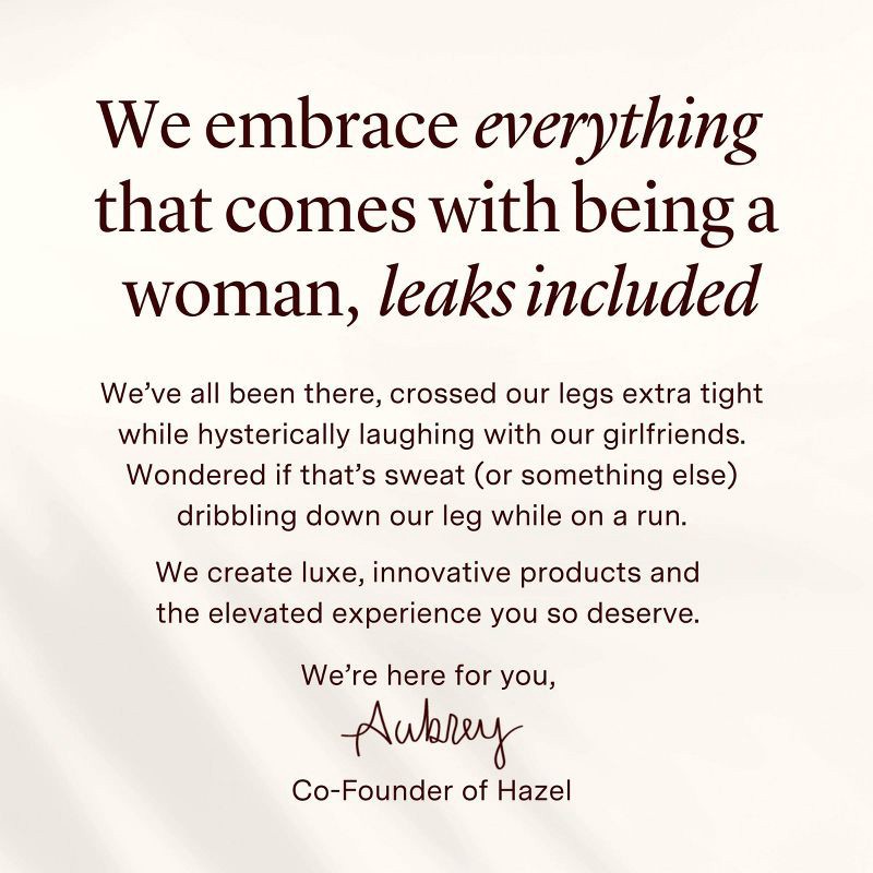 - Super Absorbent Core: No Leak Chic Tech™, holds up to 1.5 cups (that's a bladder full!).