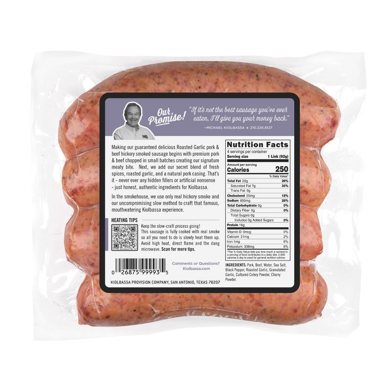 Kiolbassa Roasted Garlic Smoked Sausage - 13oz