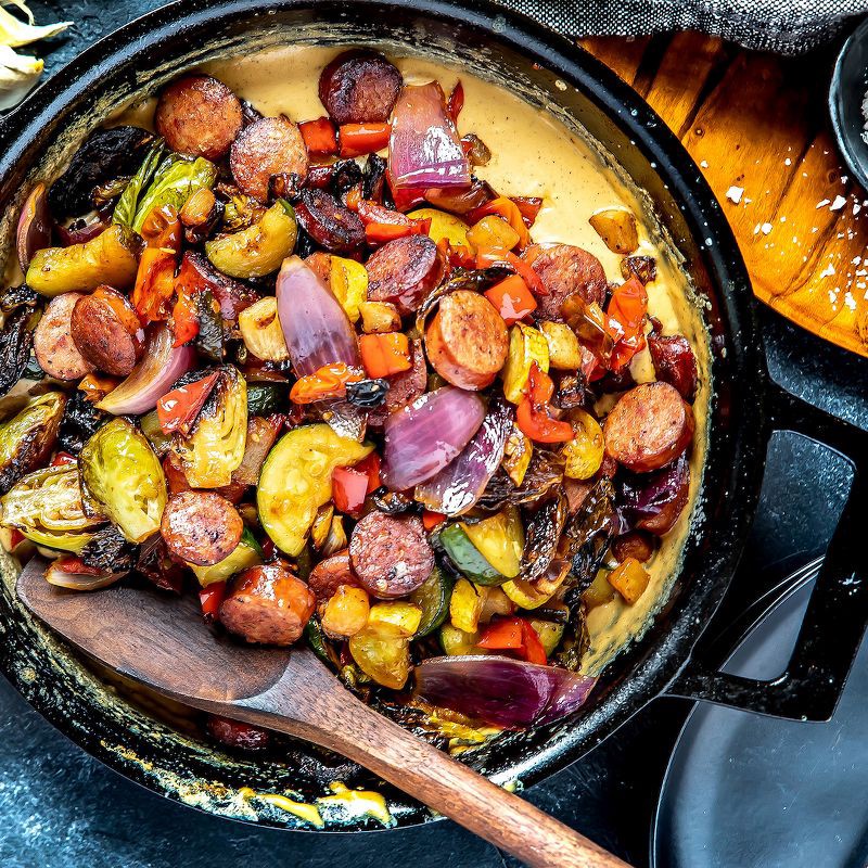 Making our guaranteed delicious roasted garlic pork & beef smoked sausage begins with premium pork and beef chopped in small batches creating our signature meaty bite. Next, we add our secret blend of…