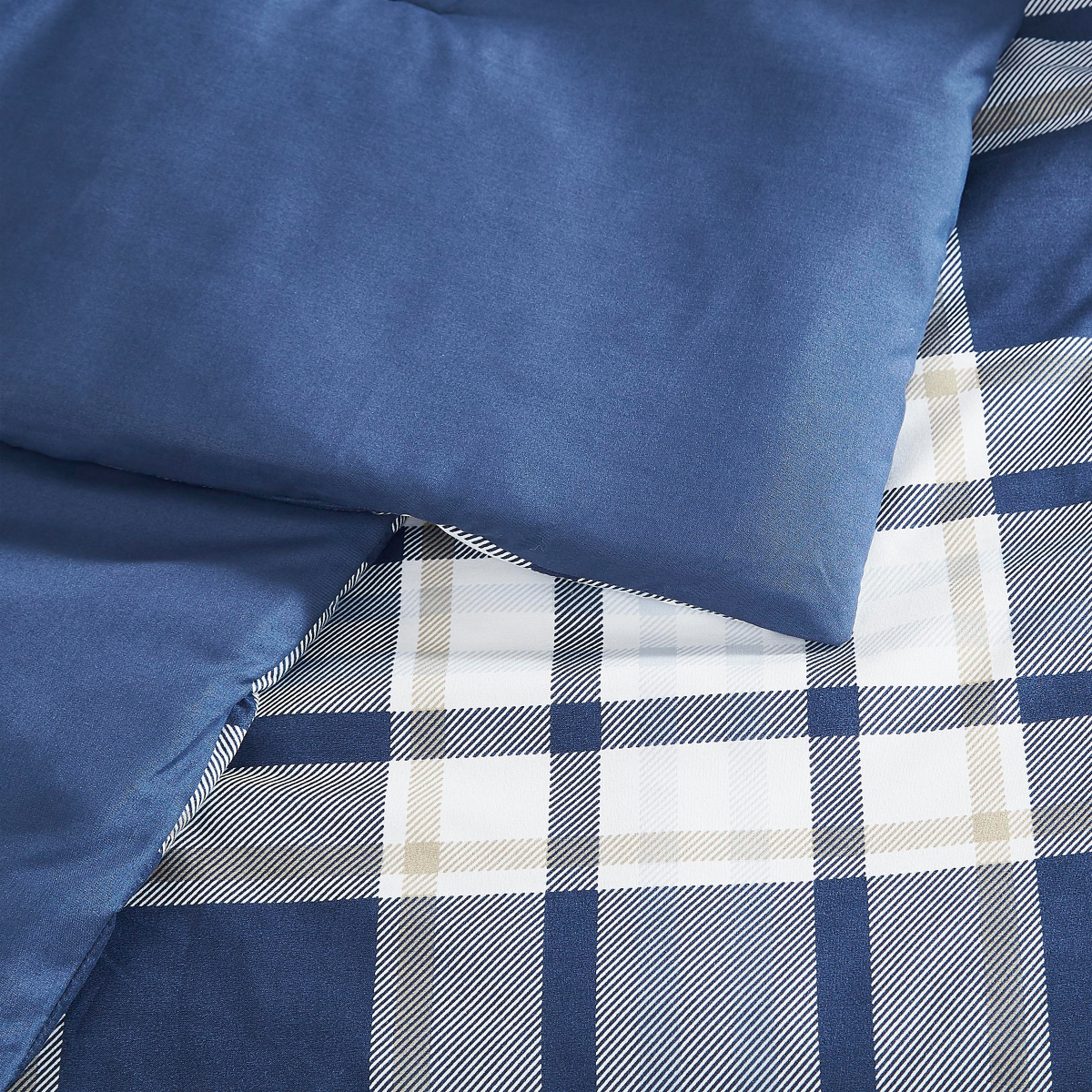 London Fog 3pc Comforter Set F/Q Navy Plaid