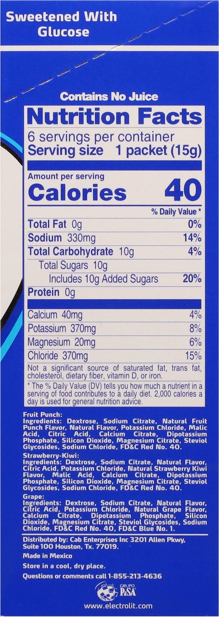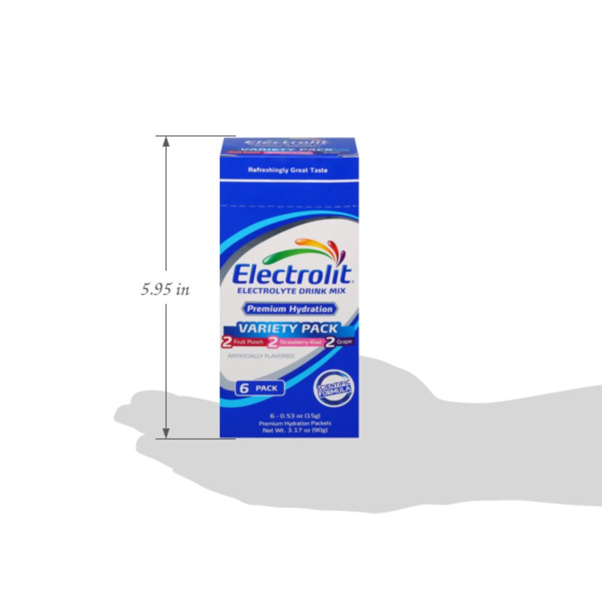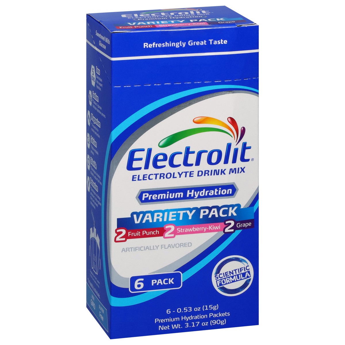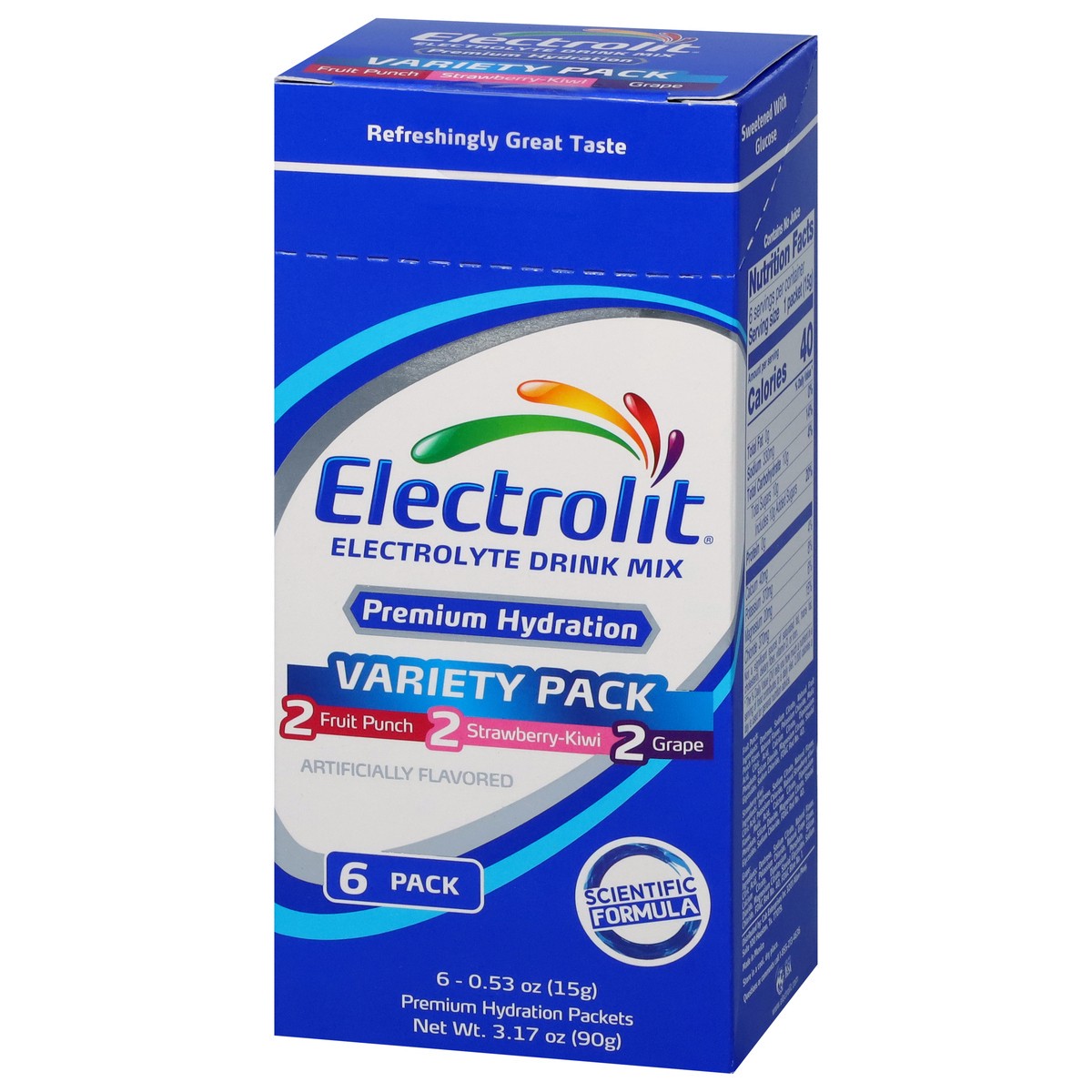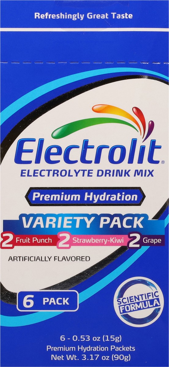Electrolit Premium Hydration Fruit Punch/Strawberry Kiwi/Grape Electrolyte Drink Mix Variety Pack - 6 - 0.53 oz Packets