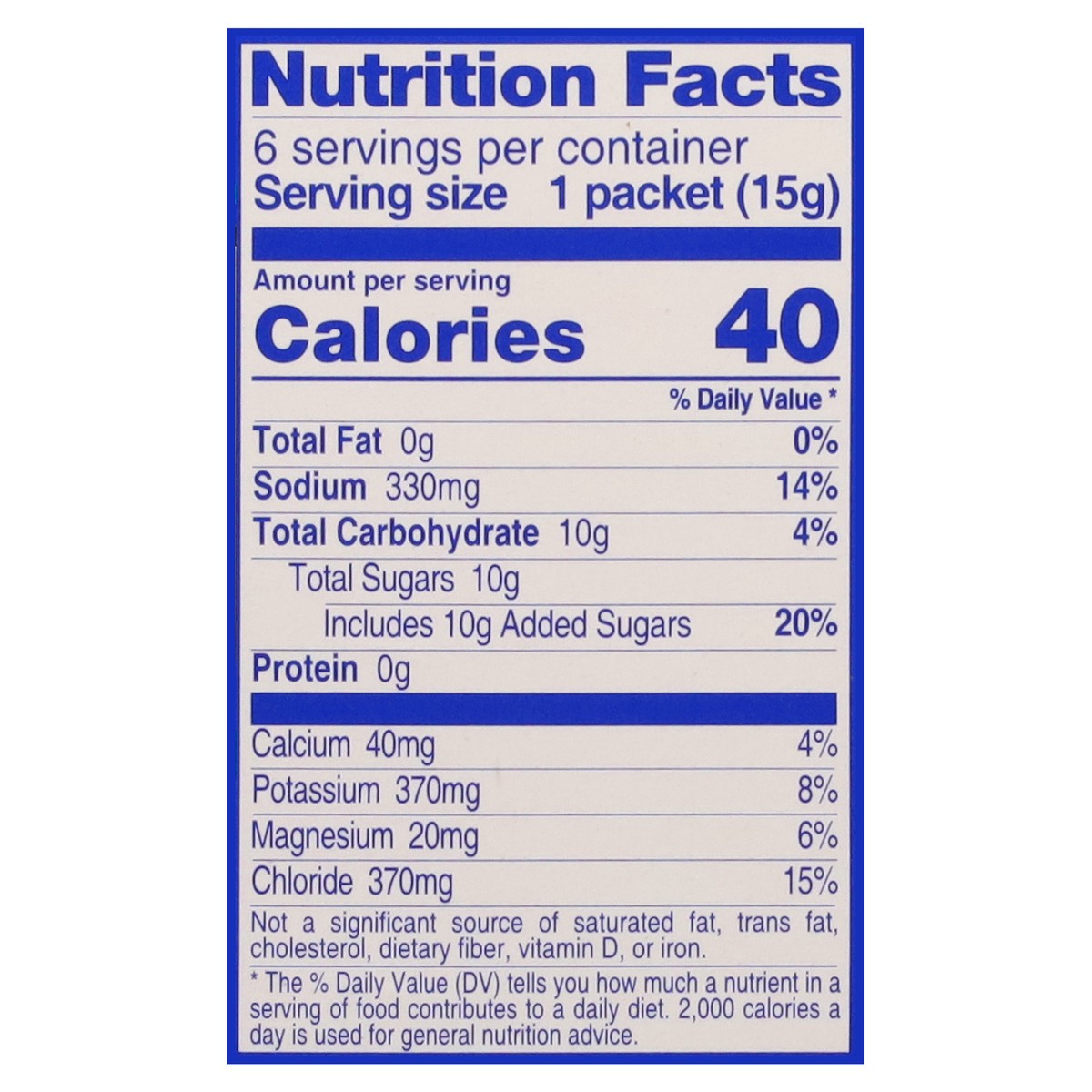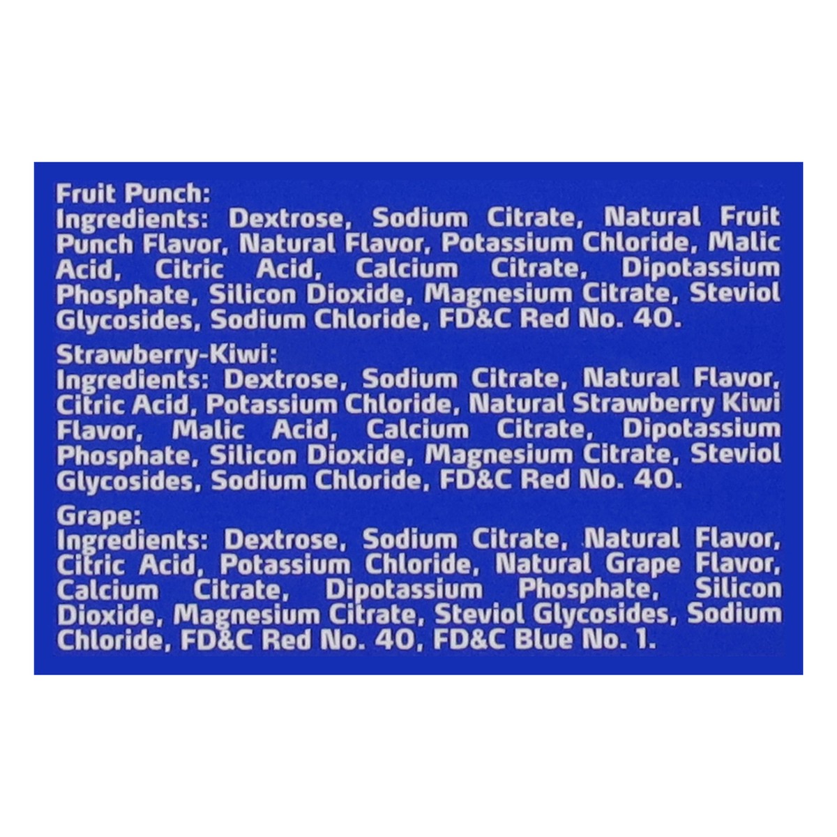 Dextrose, Sodium Citrate, Citric Acid, Potassoium Chloride, Natural Strawberry Kiwi Flavor, Natural Flavor, Calcium Citrate, Dipotassium Phosphate, Silicon Dioxide, Magnesium Citrate, Malic Acid, Stev…