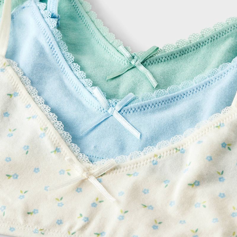 Girls' 3pk Lace Trim Cotton Starter Bra - Cat & Jack™ Blue/Green/Ivory L