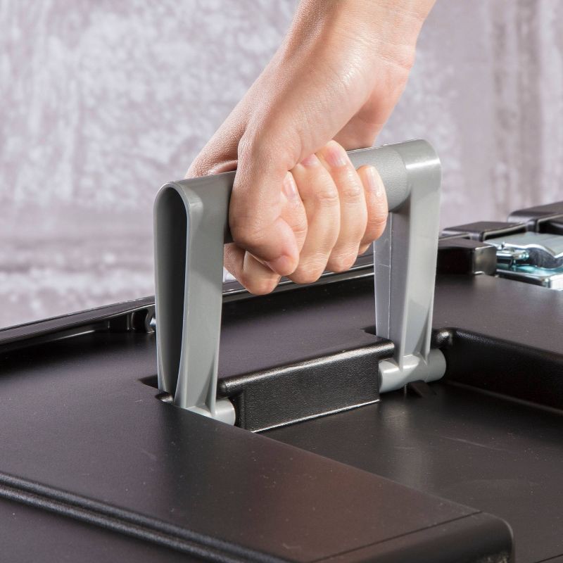 - Integrated side handles and a full-grip bail handle provide flexible carrying options