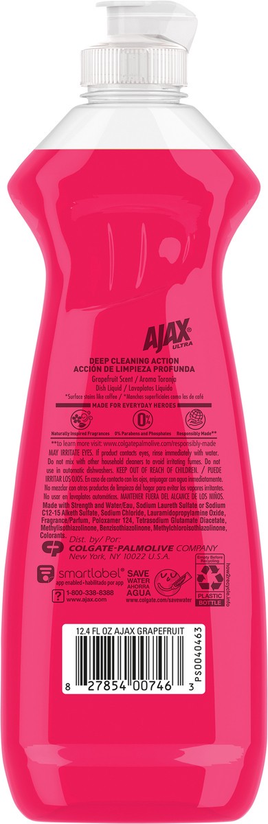 Ajax Ultra Liquid Dish Soap Grapefruit Scent, Deep Cleaning Action, 12.4 Oz. Bottle